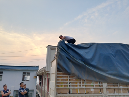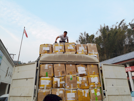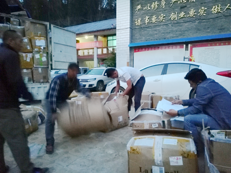 2018年4月6日,学院驻村工作队对接运送衣物的大货车后,组织小货车将部分衣物运回龚家寨村,同时通知大兴乡下辖的其他行政村组织发放