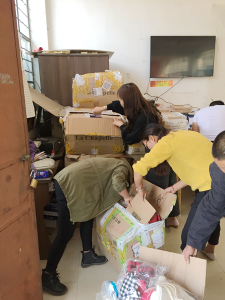 2018年4月7日,学院驻村工作队对龚家寨村的衣物进行了盘点,设计了周密的发放方案