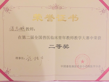 畜牧兽医学院保志鹏老师在第二届全国临床兽医青年教师教学大赛中荣获二等奖