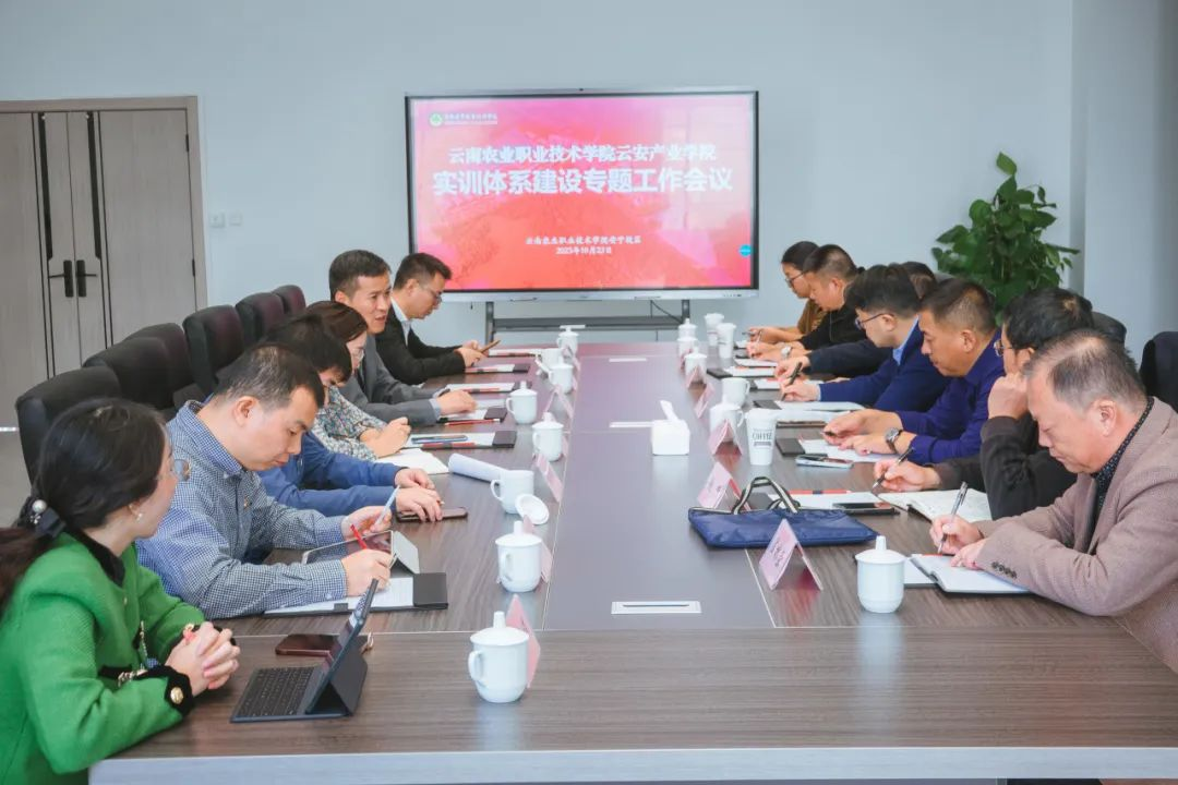 随后,一行人在安宁校区综合调度指挥中心召开了实训体系建设专题工作会议。云安产业学院院长徐红卫作了题为“聚焦重点专业群 系统推进实训体系建设”的汇报,介绍了酒店与餐饮管理,设计与园林工程两大重点专业群的建设规划,分析了实践教学与就业服务统筹发展的优势意义,说明当前实训体系组织机制、师资队伍和资源平台等建设情况。与会人员就云安产业学院实训体系建设问题进行深入交流。