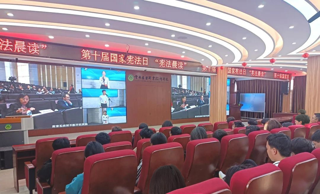 4日早晨,学院在小哨校区举行升旗仪式,学院党委副书记伍学龙出席升旗仪式并领读宪法部分条款,在场全体师生跟读;随后,同学们合唱了《宪法伴我们成长》歌曲,声声入耳,响彻校园,在潜移默化中增进法治意识,让宪法精神深入人心。茭菱校区、云安产业学院同步开展活动。