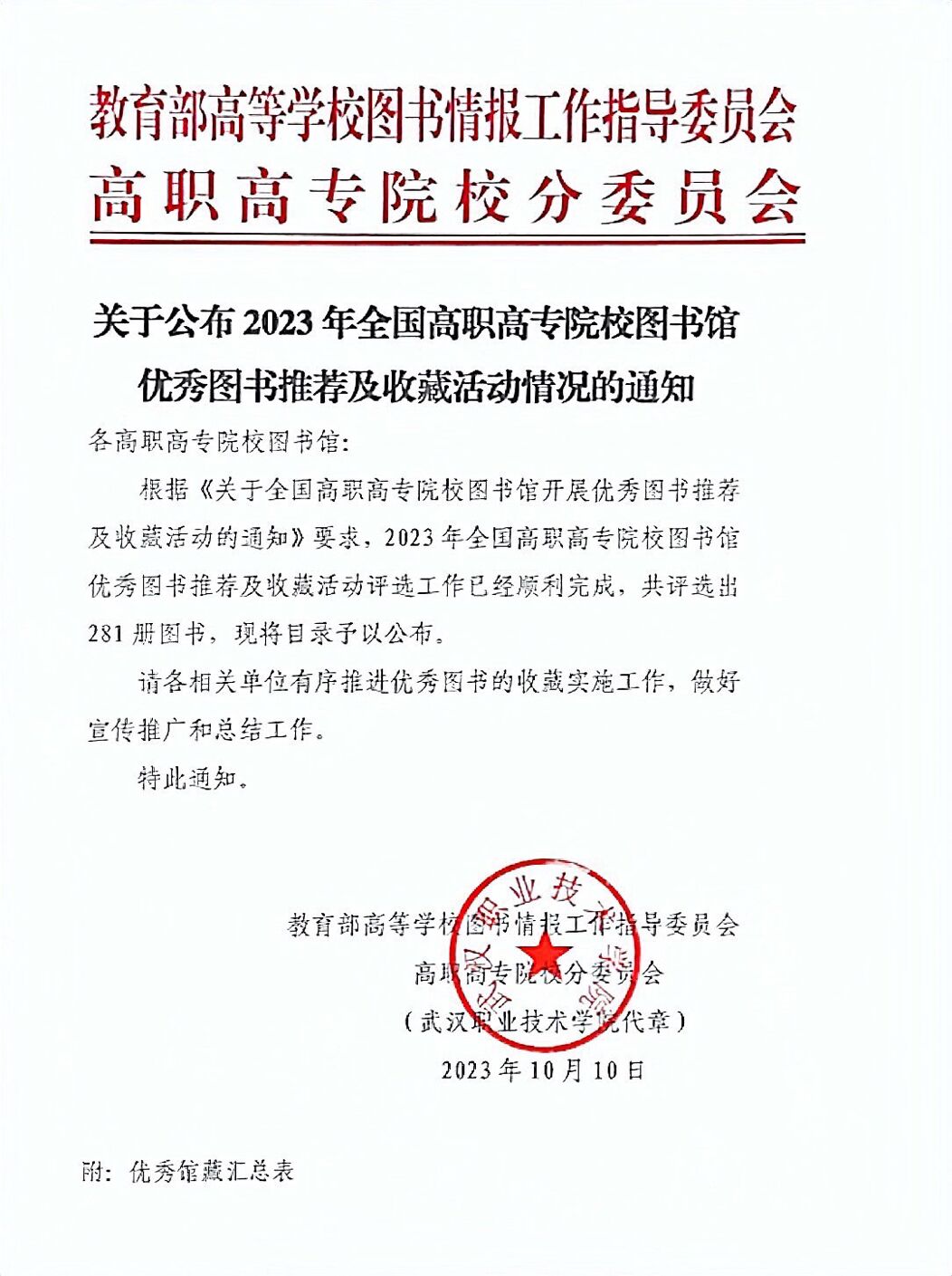 近日,经2023年全国高职高专院校图书馆优秀图书推荐及收藏活动评选,我院赵燕教授主编的《草坪建植与养护》(中国农业大学出版社)和杨文涛教授主编的《中国传统文化》(中国言实出版社)两种图书入选全国高职高专院校图书馆优秀馆藏图书。这是对我院教学水平的肯定和推荐,更是对我院教师辛勤工作的褒奖。