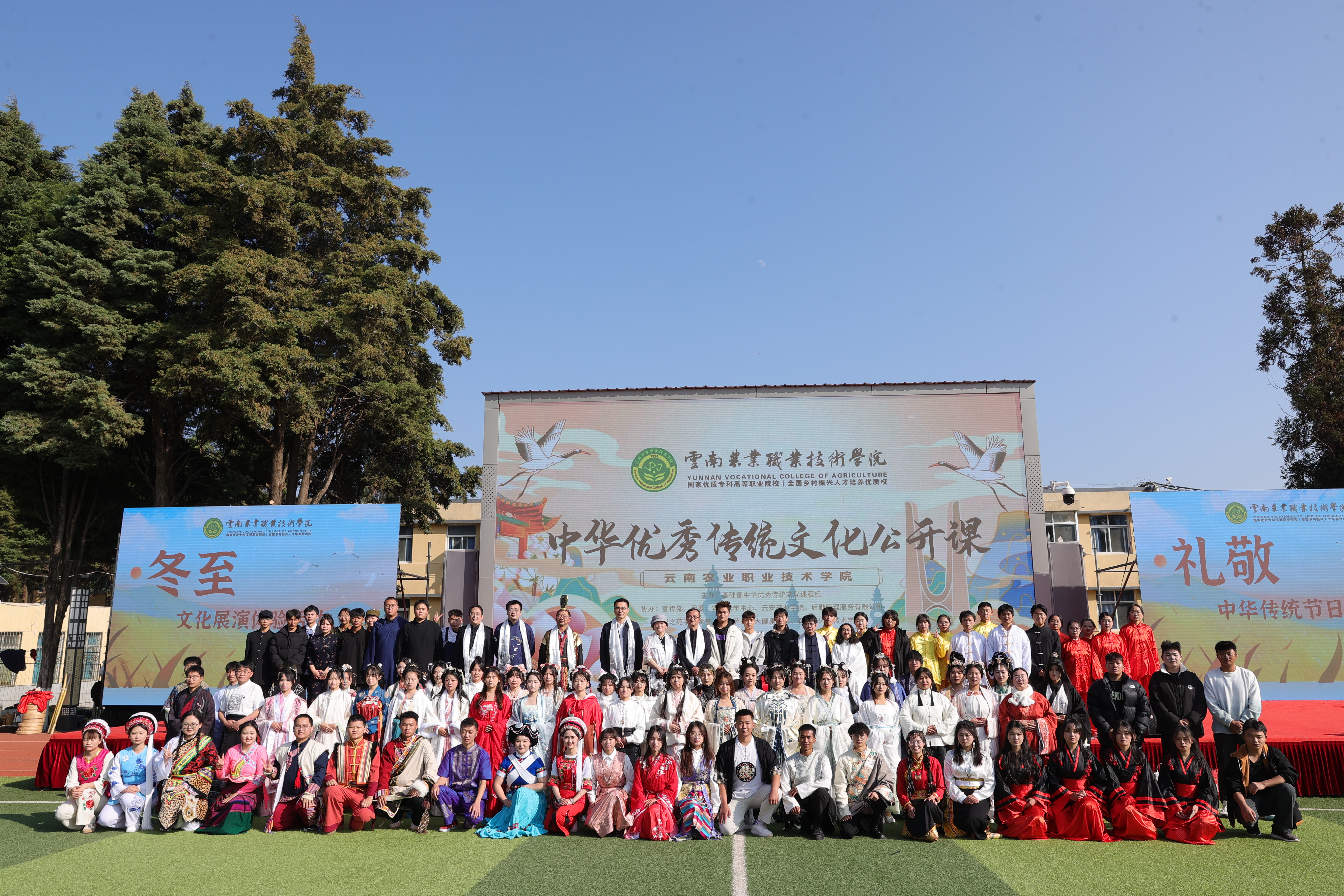 文艺展演节目以祭祖仪式、京剧表演、歌曲演唱、武术表演、舞台剧、舞蹈等不同形式次第展开。节目内容丰富、异彩纷呈,《祭祖仪式》体验3000年来中国人“仪式感”满满的冬至节;京剧表演《四郎探母》、武术表演《精忠报国》彰显出中华优秀传统文化内涵;《民族茶宴石榴红》让红色血脉和民族团结的石榴籽,交流、融合、团结、共进,赓续几千来中华民族团结奋进的共通共荣的盛宴;红色情景剧《碧血丹心耀农职》、歌曲《农职味道》和舞蹈《农耕曲》演绎出农职人爱党、爱国、爱农、爱校的独家记忆,表现农职人对土地的感恩和对生活的热爱,传承和发扬了千万年不变的农耕情怀;民俗体验中,师生们体悟到中华民族对家庭和睦、亲仁善邻等的中国传统文化的高度认同。文艺展演活动历时两小时,授课教师们声情并茂的讲授、师生们投入的演出,深受师生好评。