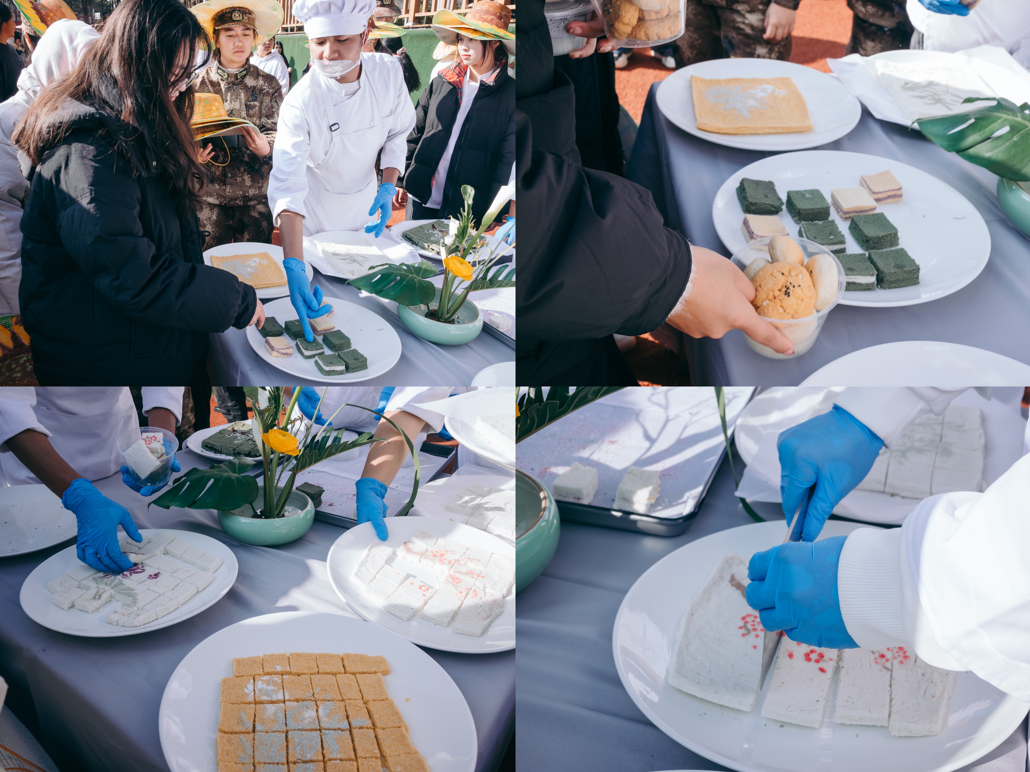 展演过程中,学院餐厅田之苑为在场师生准备了冬至汤圆、大健康学院师生准备了精美糕点、学校农场生态水稻田出产的优质水稻由云安产业学院烹调专业师生精心加工成米糕,空气中弥漫着香甜的农职味道!