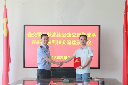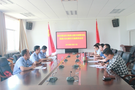 5月21日下午4:30,省交警总队高速公路交巡警支队昆曲大队陈跃坤大队长一行5人到我院交流座谈。交流座谈会在小哨校区综合楼四楼会议室进行。学院党委季佳元副书记以及党(院)办、党委宣传部、后勤服务中心、学生工作处、学院团委主要负责人参加了会议。本次会议由季佳元副书记主持。