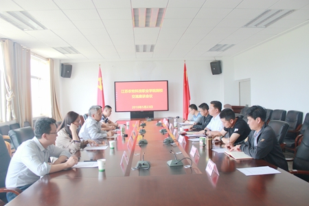 副院长田应华代表学院对蒋春茂副院长一行的到来表示热烈欢迎,并介绍了学院的 百年历史、发展现状及学院未来的规划。蒋春茂副院长介绍了江苏农牧科技职业学院的基本情况,表达了深切的合作愿望,双方就招生就业、实践教学等方面进行深入交流。