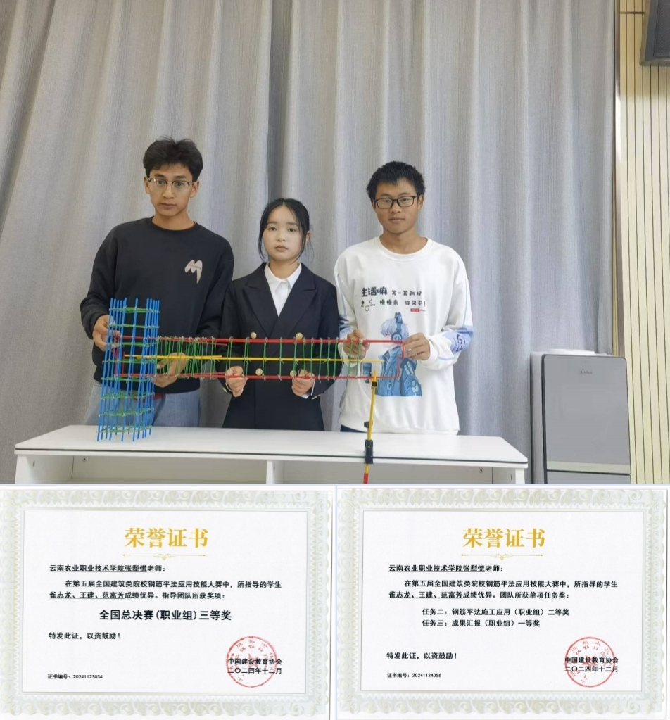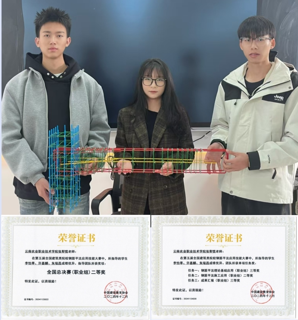 工程学院工程造价专业的李怡葶、许嘉麟、朱瑞昌、雀志龙、王建、范富芳等同学在张犁慌老师和彭苗老师的指导下组建的两支参赛队伍,为了备战大赛付出了辛勤的努力。他们赛前充分利用大赛组委会提供的钢筋工程实践教学专用工具箱、仿真软件以及系列课程资源,将理论与实践紧密结合,实施项目驱动与任务导向的教学方法,不断提升实操技能和应对实际问题的能力,最终获得佳绩。