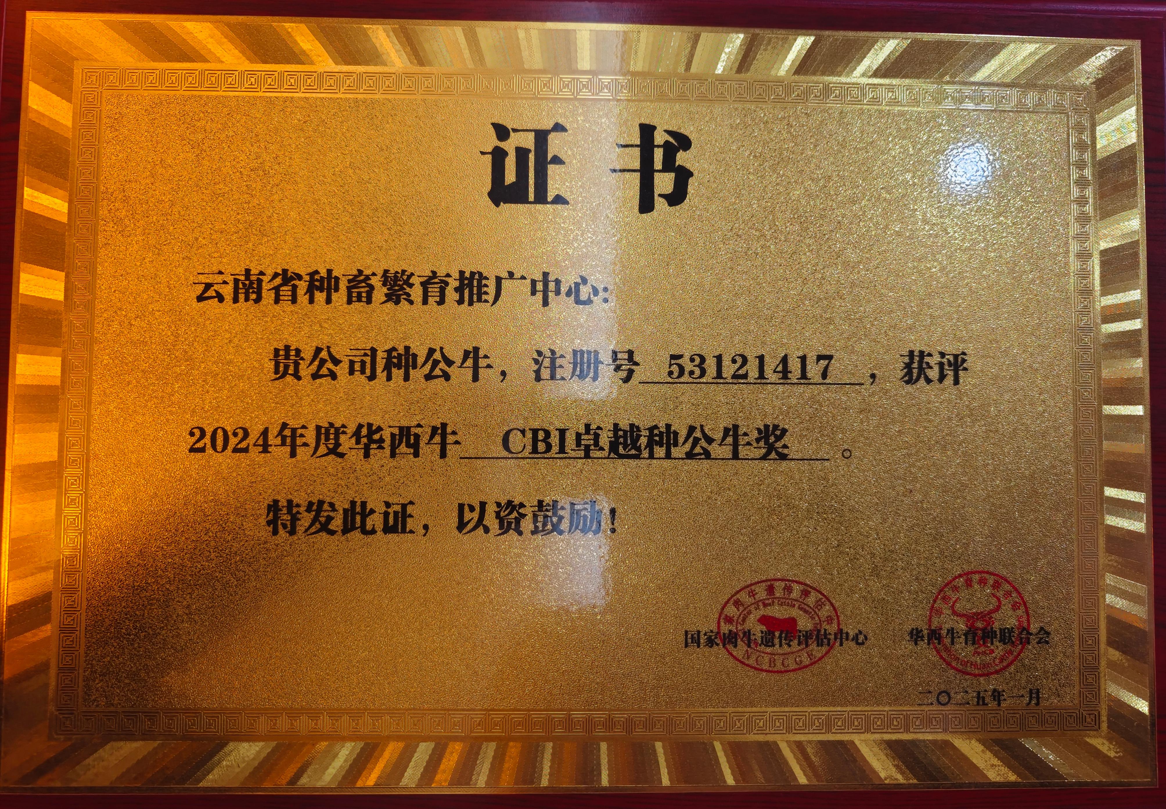 此次会议还邀请了专家开展华西牛系谱证书登记流程培训,进行国外牛育种组织成功案例分享,举行了2024年华西牛优秀种公牛和种母牛颁奖仪式,分别对华西牛种公牛CBI、GCBI和华西牛母牛CBI排名全国前10的30头牛所在单位颁发了奖牌。会上,我校种牛场自主培育的注册号为53121417的种公牛获评2024年度华西牛CBI卓越种公牛奖。