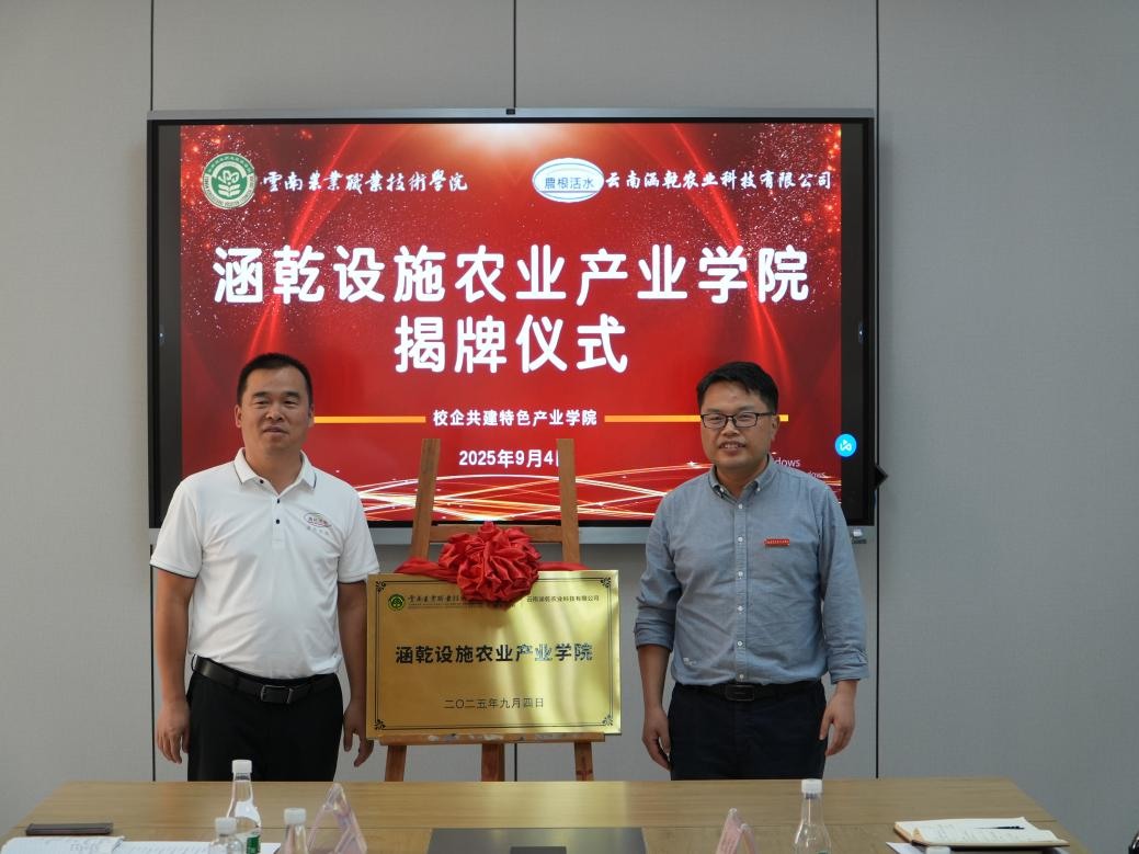 9月4日下午,校企合作共建“涵乾设施农业产业学院”的签约会在我校小哨校区举行。我校校长陈太安、副校长杨涛,云南涵乾农业科技集团有限公司董事长金晓伟、副总经理陈洪伟、崔起、王爽,以及校企双方有关人员共同出席。会议由杨涛副校长主持。