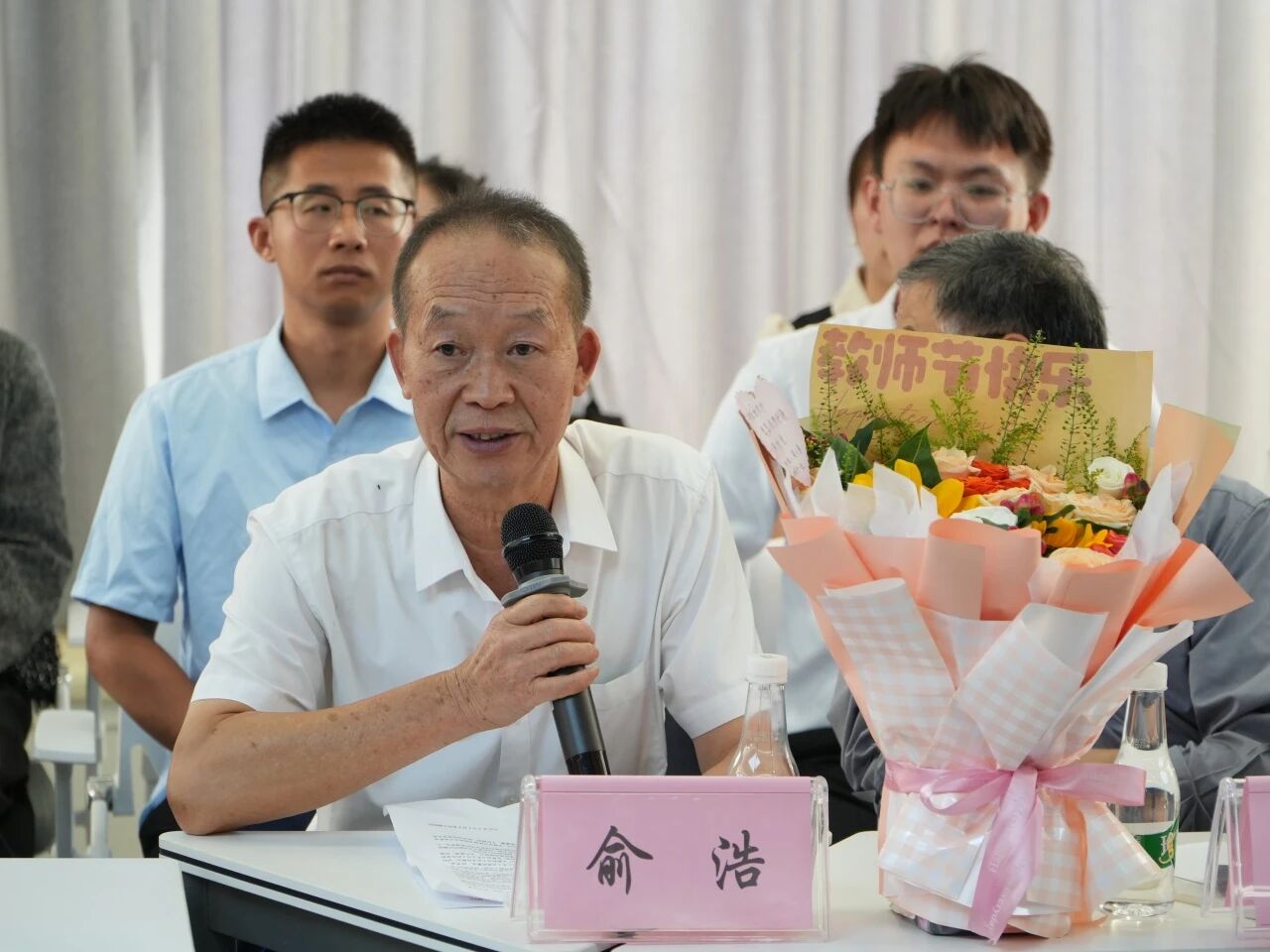 离退休教师代表俞浩发言