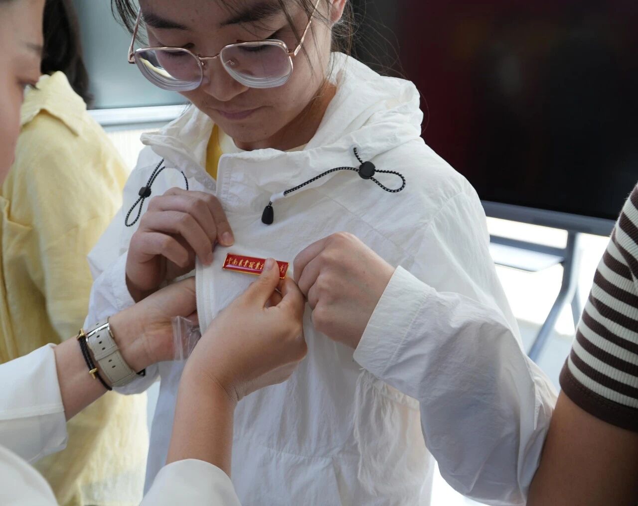 此外,9月新入职的教师们在座谈会上进行了集中宣誓。他们庄严承诺将忠诚于党的教育事业,履行教师的神圣职责,为培养德智体美劳全面发展的社会主义建设者和接班人而努力奋斗。与会教师代表还为新入职教师佩戴了校徽。