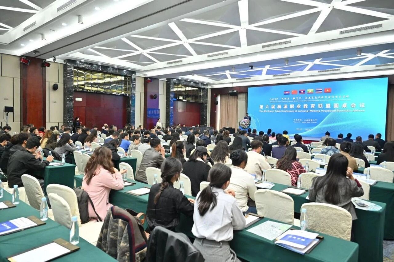 10 月 23 日,由云南民族大学主办的第六届澜湄职业教育联盟圆桌会议在昆明举行。云南省教育厅副厅长杨春城、云南民族大学党委书记阮朝奇等嘉宾,及澜湄五国教育部门、院校与国内联盟成员单位、企业代表 200 余人参会,会议聚焦区域职业教育协同发展,由云南民族大学副校长邹永松主持。