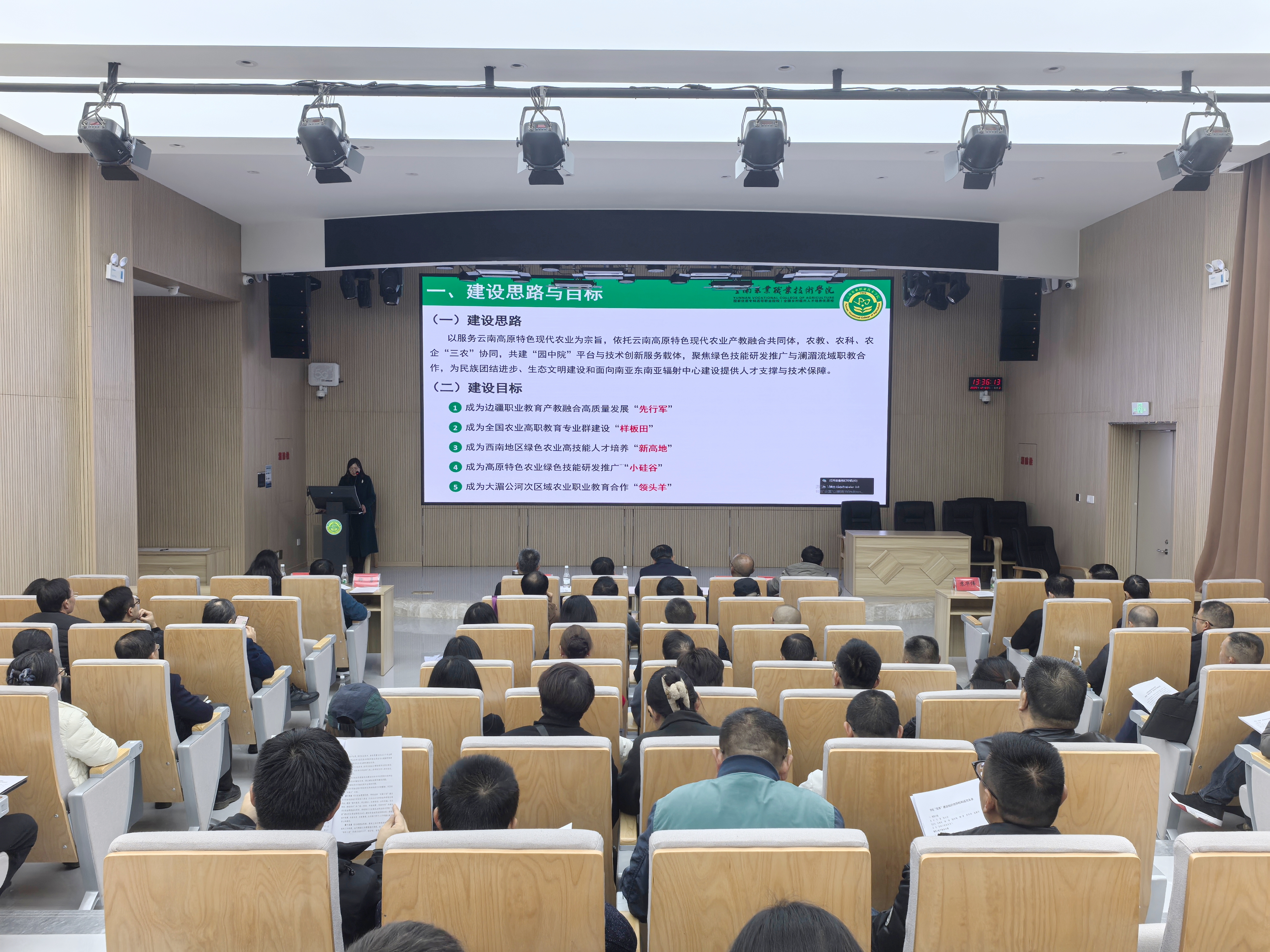 围绕“双高”建设推进,文俊书记提出三点要求:一是提高认识,增强责任感、使命感和紧迫感。要站在教育强国建设的战略高度,深刻领会党中央、国务院关于职业教育发展的决策部署,将“双高”建设作为实现教育现代化的关键路径;要立足云南“三个定位”,打造边疆职业教育新范式,培养服务“一带一路”的跨文化技术技能人才;要紧扣学校第四次党代会目标,以“双高”建设为牵引,加快推进农业职业技术大学创建进程。二是深化政策学习,明晰建设方向。全体干部职工要系统研读国家、省级“双高”建设政策文件,精准把握新要求、新目标;深入学习学校建设方案,将阶段任务与关键指标细化分解;坚持研建结合,创新工作举措,推动“双高”建设走深走实。三是压实工作责任,凝聚攻坚合力。健全“领导小组统筹、双高办协调、工作组推进、专业群落实”的工作机制,构建“上下联动、左右协同”的工作格局;实行任务清单化管理,树立“今天再晚也是早,明天再早也是晚”的效率意识;完善考核激励机制,将建设成效与绩效考核挂钩,严守廉洁底线,确保各项任务高质量完成。