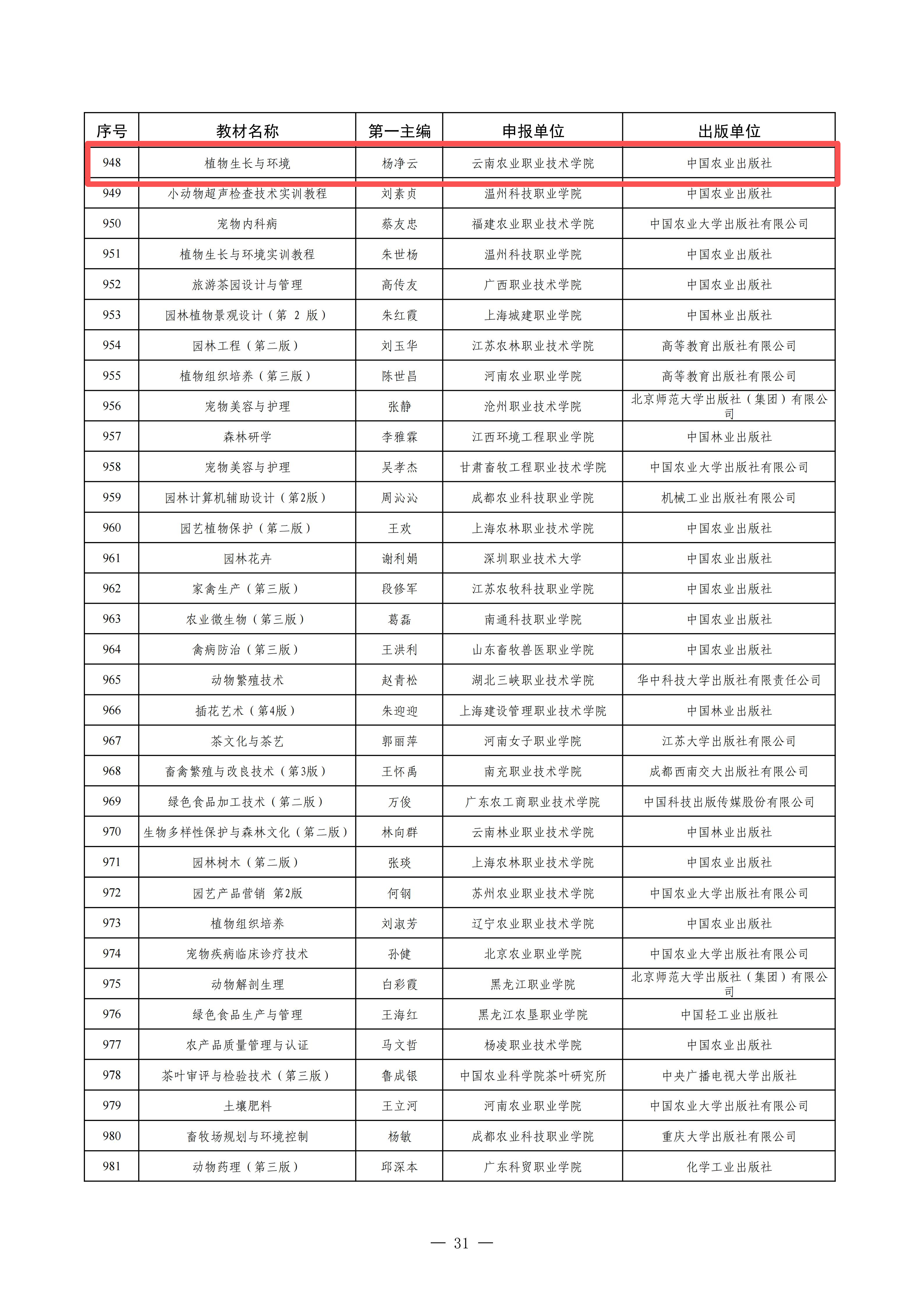 我校杨净云教授主编的《植物生长与环境(第三版)》(中国农业出版社)教材入选第二批“十四五”职业教育国家规划教材,实现学校专业核心课程职业教育国家级规划教材历史性突破。