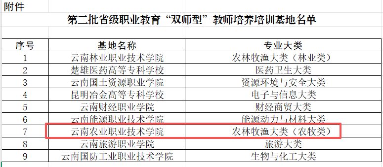 近日,云南省第二批省级职业教育“双师型”教师培养培训基地名单公布,学校成功入选,成为农林牧渔大类(农牧类)领域的省级培养培训基地,这是云南省教育厅对学校在农林牧渔领域长期深耕办学成果、师资建设水平的高度认可。
