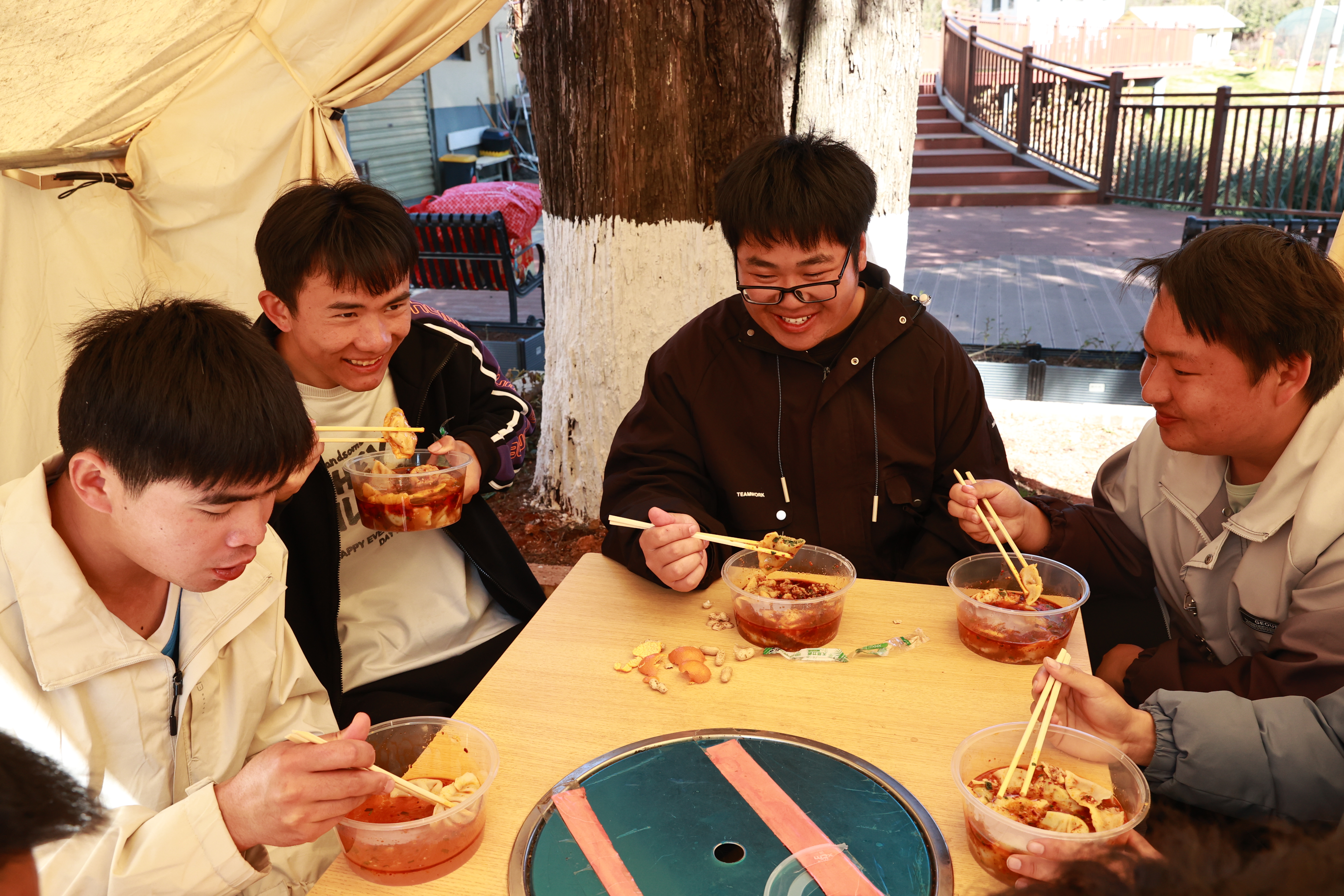 校领导一行还与同学们一同包饺子、放炮仗,一张张薄薄的饺子皮,承载着学校与同学们之间的深厚情谊;“噼里啪啦” 的炸响声将节日的氛围推向了高潮。热气腾腾的饺子出锅后,大家围坐在一起品尝自己的劳动成果,让留校学子在校也享受到“家”的味道。校园内暖意融融,欢声笑语不断,定格成一幅其乐融融的新春图景。