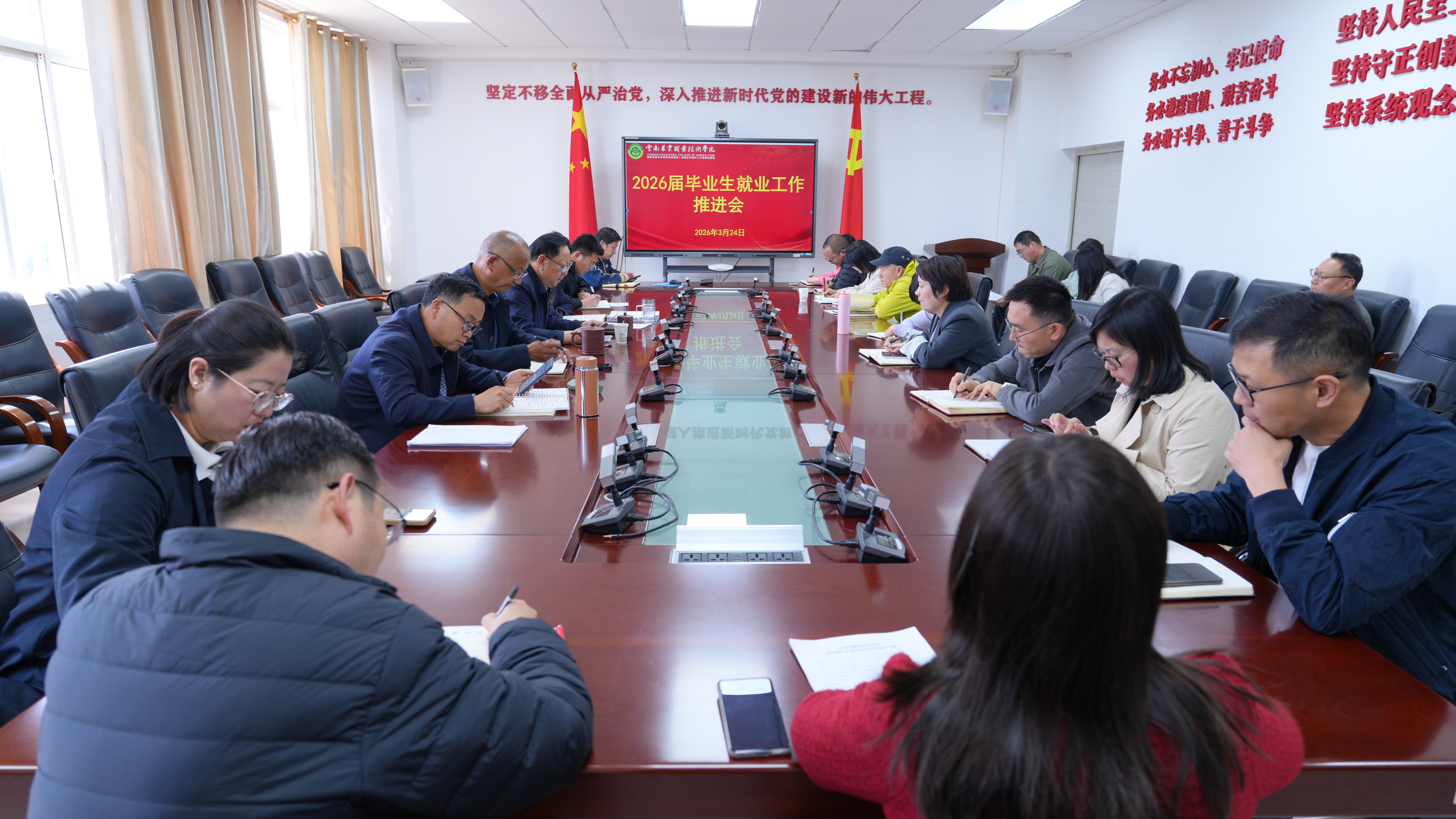 此次2026届毕业生就业工作推进会的召开,进一步明晰了全校就业工作目标任务、细化了工作举措、凝聚了工作合力。下一步,学校将深入贯彻落实各级就业工作会议精神,立足涉农高校办学定位与乡村振兴战略需求,锚定毕业生高质量充分就业目标,压实工作责任、创新工作方法,持续强化就业指导服务,切实破解毕业生就业难题,助力2026届毕业生顺利就业、体面就业、高质量就业,在服务乡村振兴和农业强国建设中实现人生价值。( 招生就业处供稿/一审:徐贤明、二审:唐丽群、三审:杨筱莹/一校:杨帅、二校:张敏、三校:唐丽群/责任编辑:唐丽群)