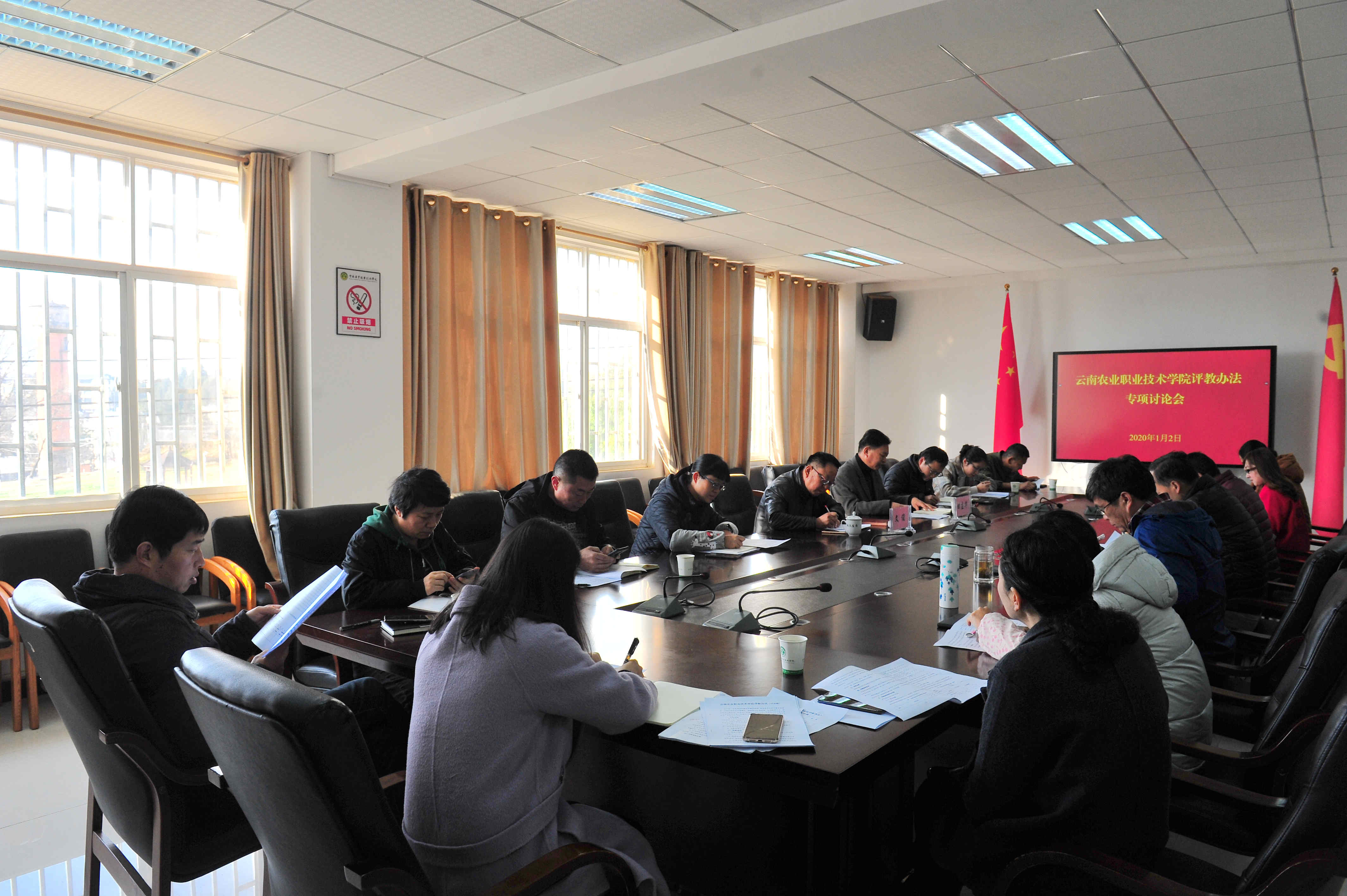 2020年1月2日上午,学院在小哨校区综合楼四楼会议召开《云南农业职业技术学院评教办法》专题讨论会,推进学院教学质量提升,为学院制度创新和治理能力建设做出积极探索。院长文俊、副院长田应华出席,各二级学院和相关业务部门主要负责人参加了讨论会。会议由田应华副院长主持。