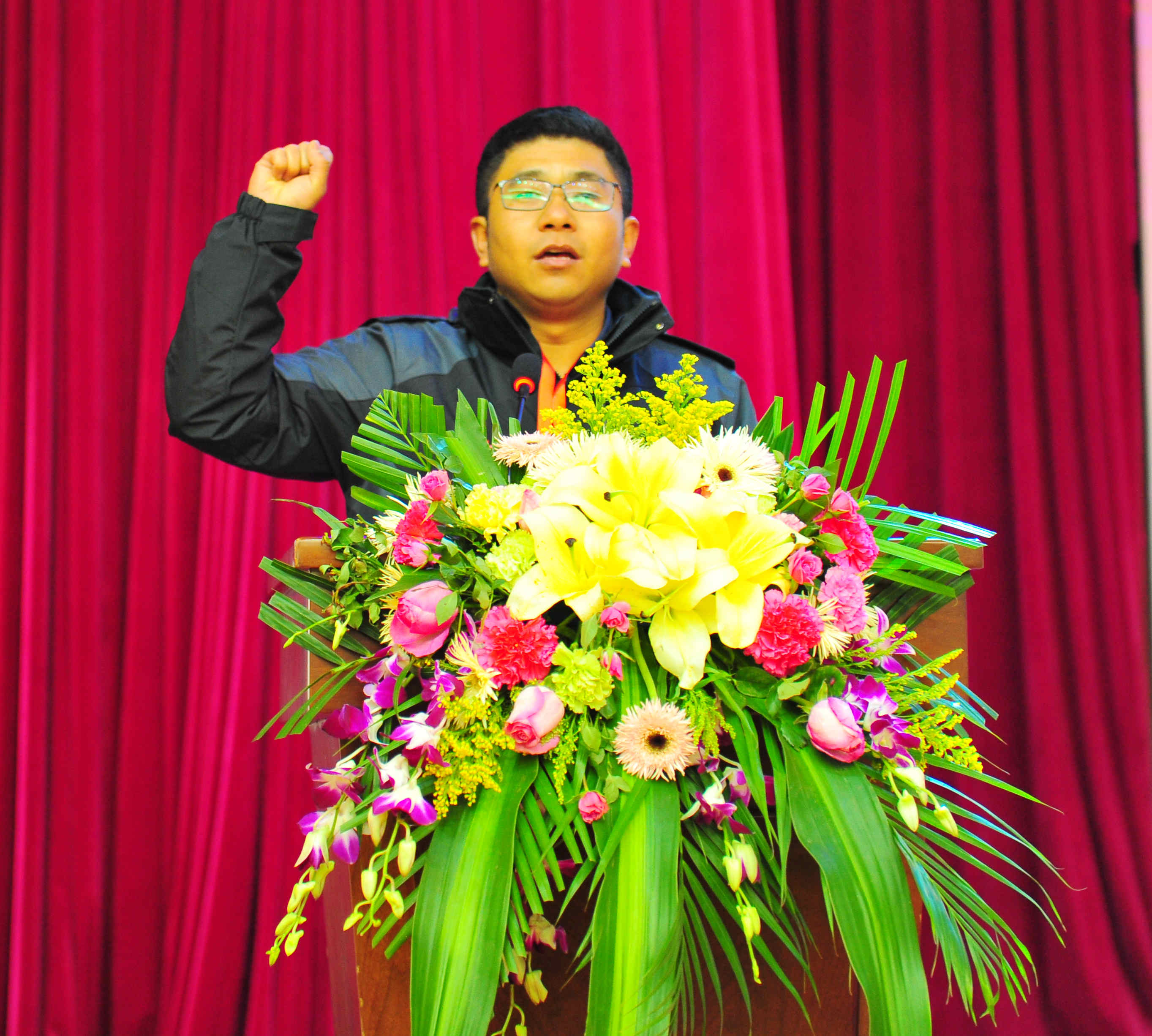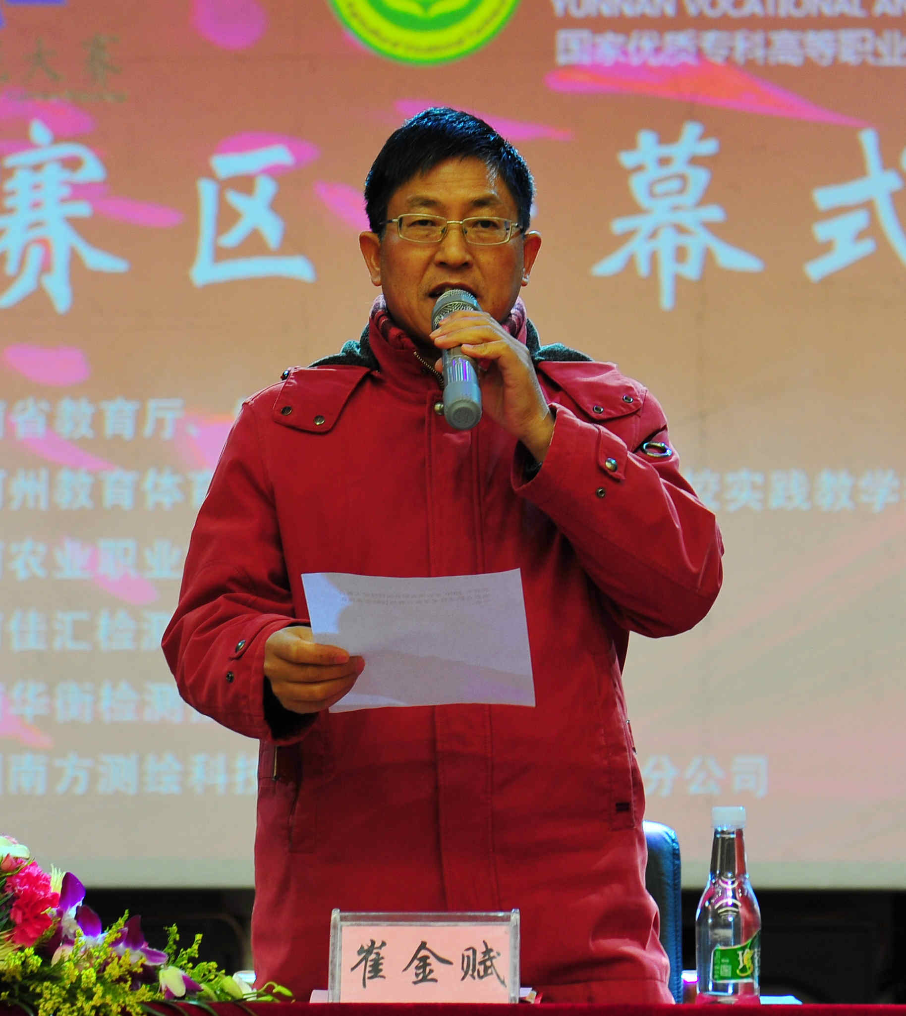 在开幕式上,文俊院长代表学院致辞。他指出,技能大赛是职业院校教育教学活动的有效延伸,是检验职业院校教育教学成果的重要形式,是提升技术技能人才培养质量的重要抓手,是检验职业院校学生技能水平、弘扬工匠精神的重要平台,是促进专业建设和教学改革、提高教育教学质量的推进器,是对接云南高原特色产业需求、反映云南省职业教育教学水平的一次盛会,更是贯彻落实党的十九大关于“完善职业教育和培训体系,深化产教融合、校企合作”要求的重要体现。希望各参赛选手毫不畏惧,沉着冷静,充分发挥出平时的训练水平,不以成败论英雄。同时,也希望大家严守纪律,服从裁判,以饱满的热情,不屈不挠的精神,赛出风格、赛出水平。希望所有的裁判人员严格按照要求和评分规则秉公办事,希望全体工作人员热情服务、树立形象、努力工作,为实现安全、公正、规范的办赛目标贡献力量。