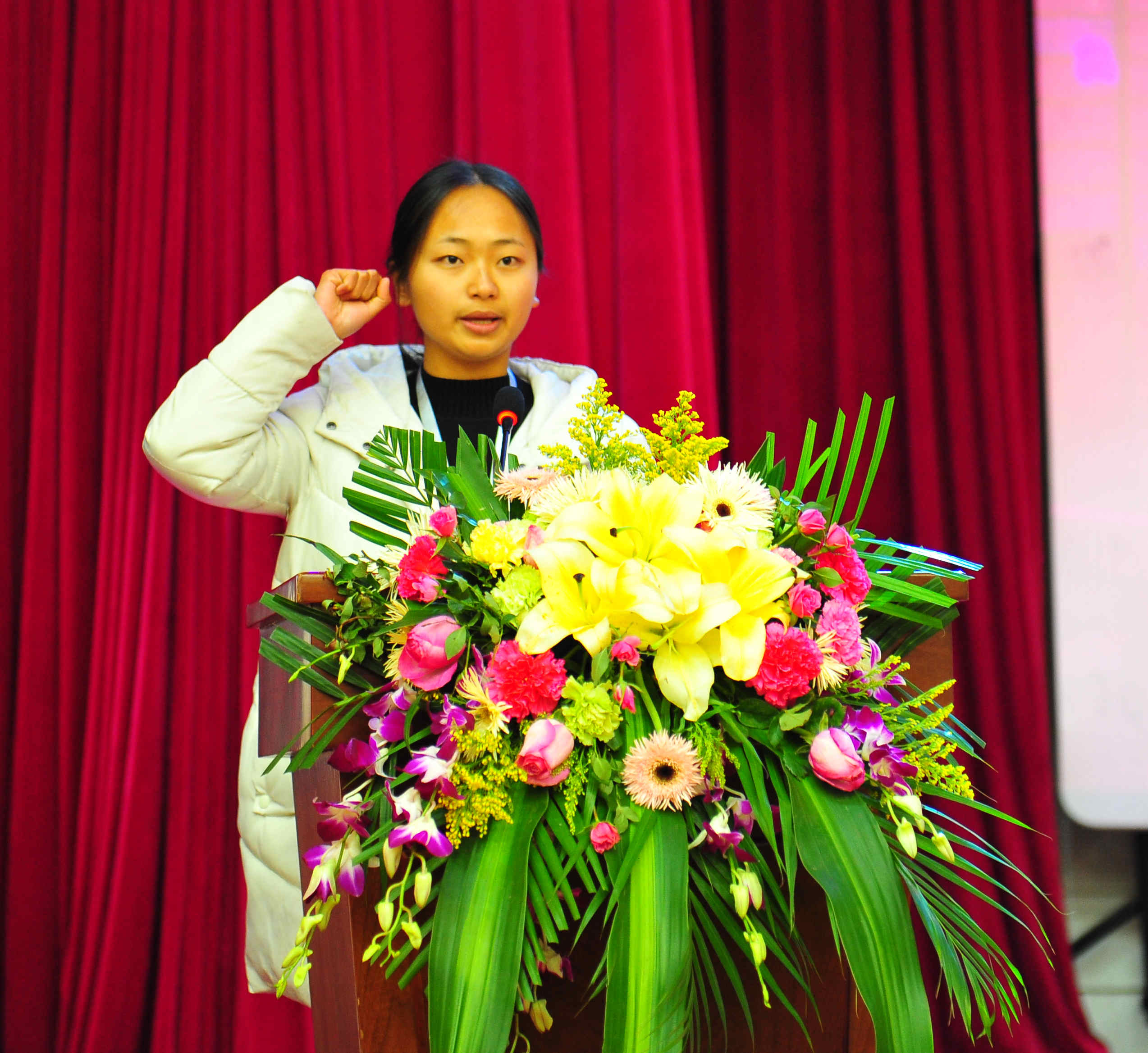 裁判员代表西南林业大学王锲教授代表裁判员宣誓;参赛选手代表云南农业职业技术学院2018级食品检测一班杨建美同学代表参赛选手宣誓。