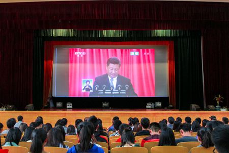 思政课教师课堂上组织学生收看,会后思政课教师组织学生对习近平总书记的讲话展开了热烈地讨论。思政部主任张英召开部门会议,再次学习习近平总书记的重要讲话精神并展开了积极讨论,要求全体思政课教师在接下来的工作中,不仅要坚持把马克思主义这个看家本领学通,更要为推动习近平新时代中国特色社会主义思想和党的十九大精神,即当代中国的马克思主义进校园、进课堂、进头脑,发挥应有作用,要发扬马克思主义真理的魅力,运用真理的力量引领青年学生,使我院学生成为能够担当中华民族复兴大任的时代新人。(党委宣传部、思想政治理论教学部供稿)