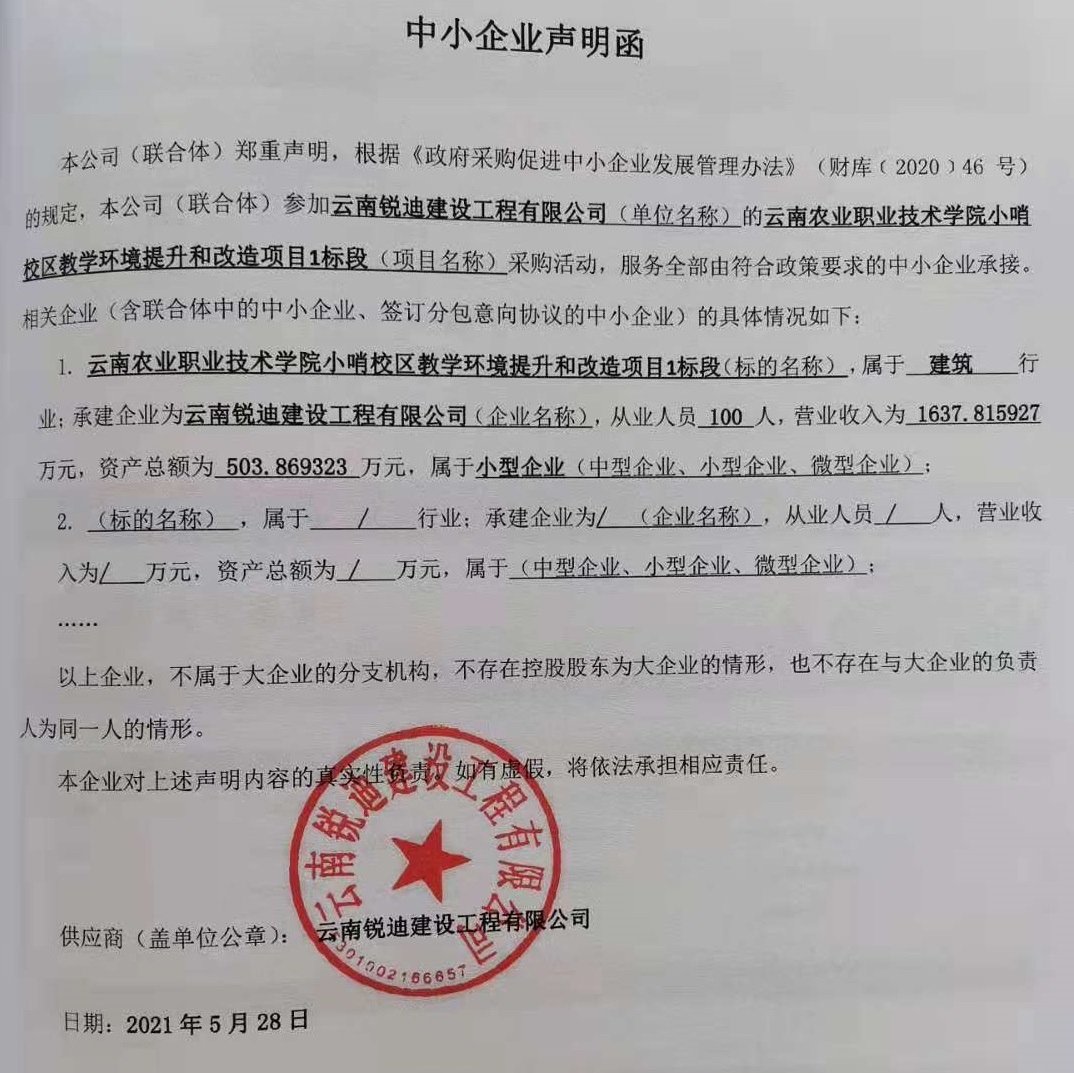 供应商名称:云南锐迪建设工程有限公司